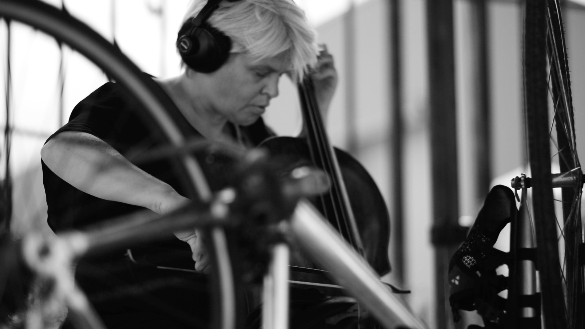Pièce de musique mixte pour violoncelle baroque (Pauline Warnier) et sons de vélo (Celine Pierre): tournée à vélo en juillet 2023 et 2024 en Meurthe et Moselle, à Ays, Reims et Châlons en Champagne dans le cadre du « Cyclo‐Festival Hercule à Vélo ».