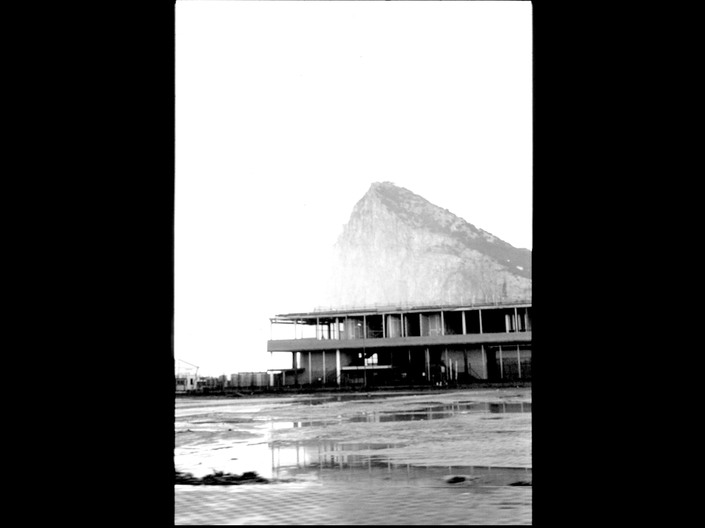 Une plage frontalière face au rocher de Gibraltar, repérage pour une installation.