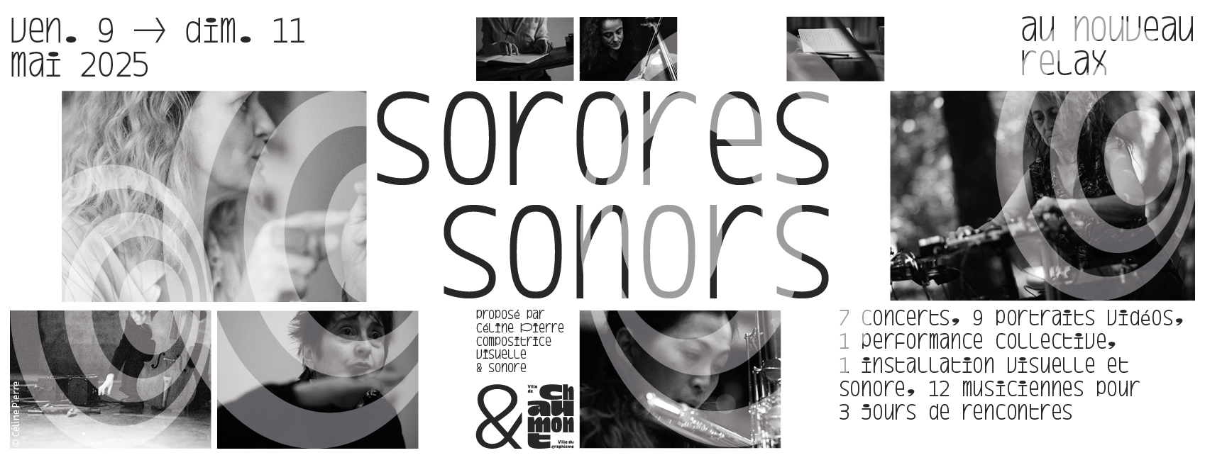 SORORES SONORS Chaumont 2025 est un événement proposé par Celine Pierre et Patricia Dallio dans le cadre de VISIONS SONORES de la Ville de Chaumont ; une co‐production « d’une rive à l’autre/des cultures participatives » – Ville de Chaumont – « compagnie soundtrack » ; avec le soutien du Centre National de Création Musicale Césaré de Reims, de la Plateforme des Musiques de Création Grand Est, de la Maison de la Musique Contemporaine https://musiquecontemporaine.org, de la Région Grand Est en Arts Visuels, de l’association Arts vivants 52, du lycée Charles de Gaulle de Chaumont, et du Centre National de Création Musicale ici l’onde de Dijon.