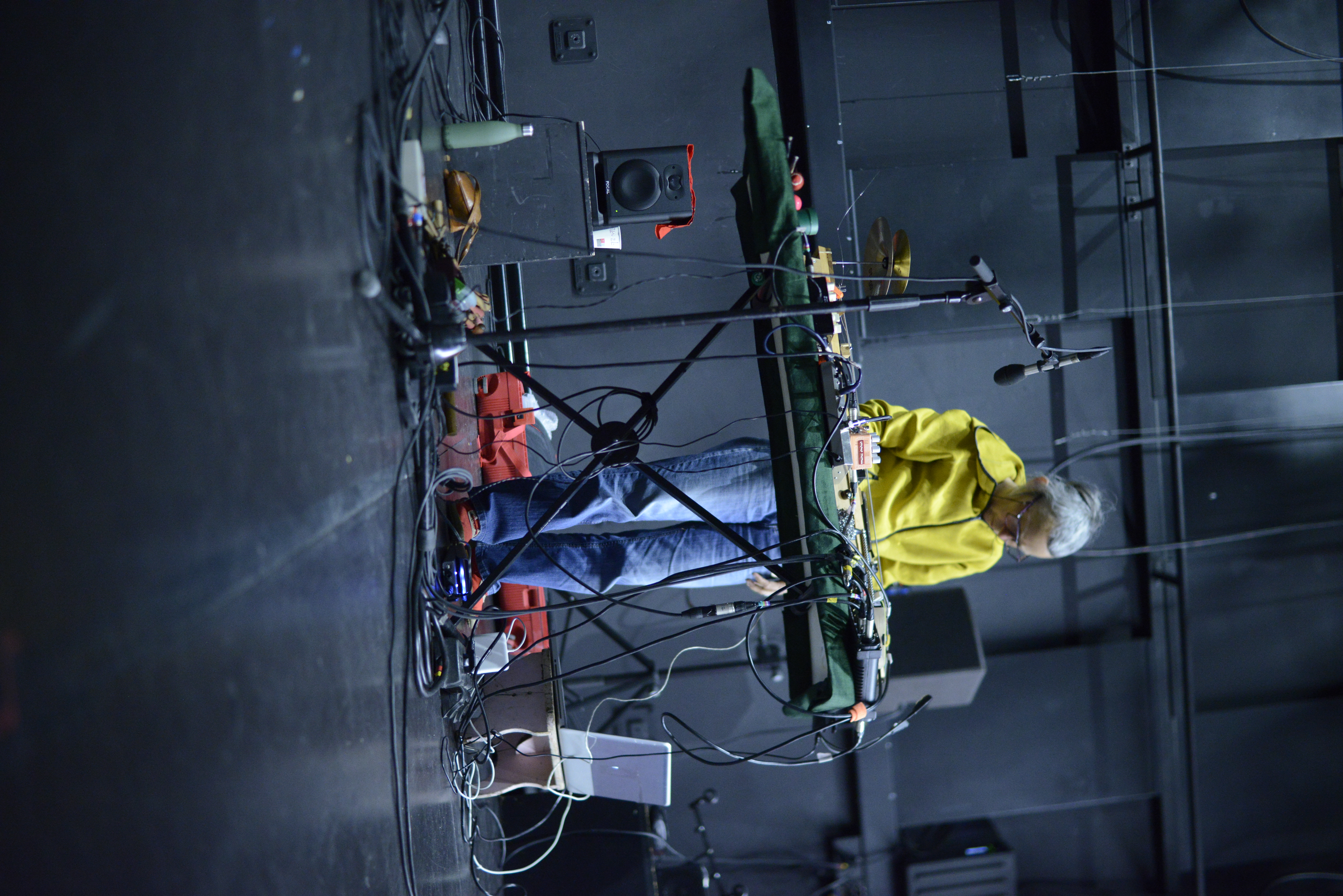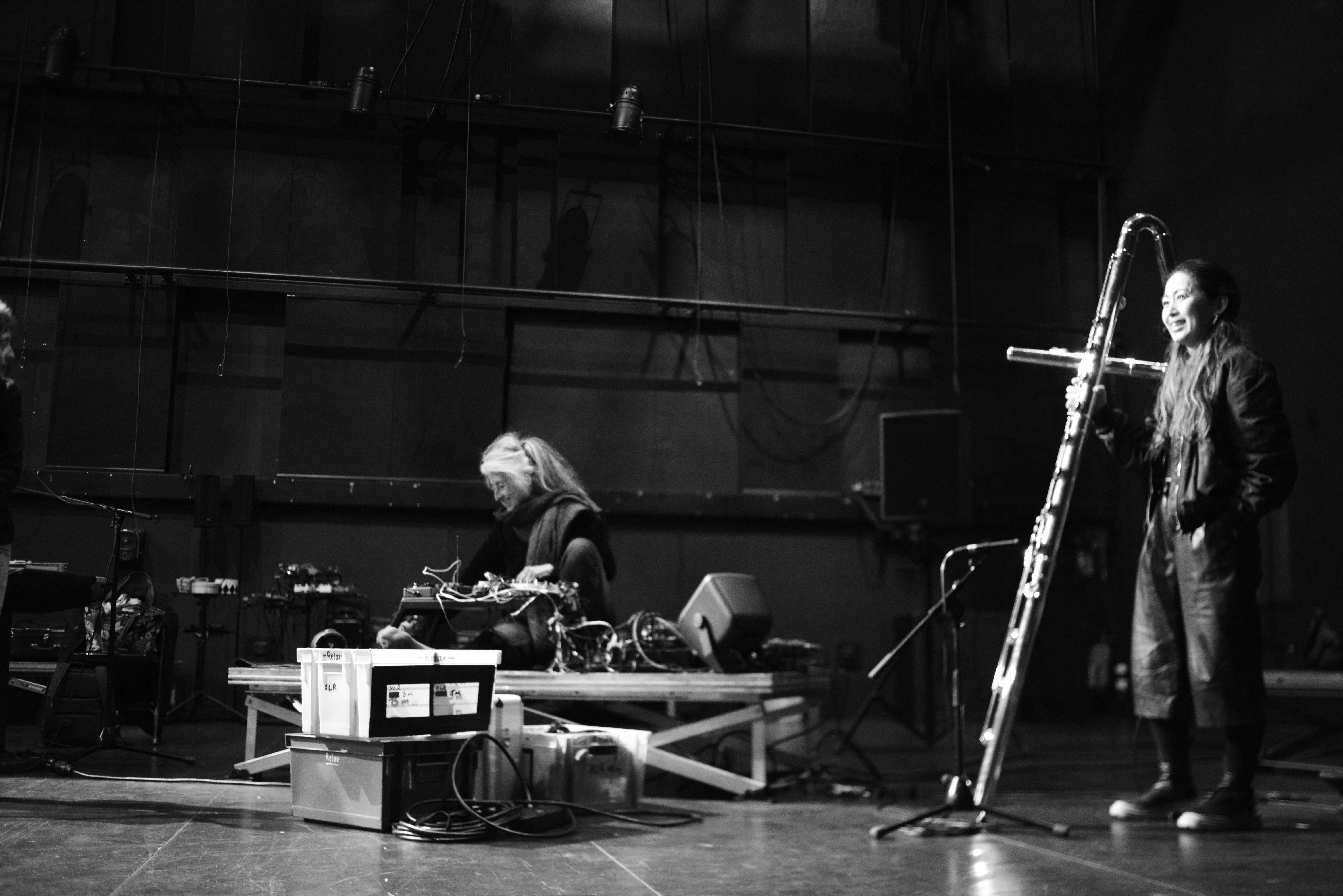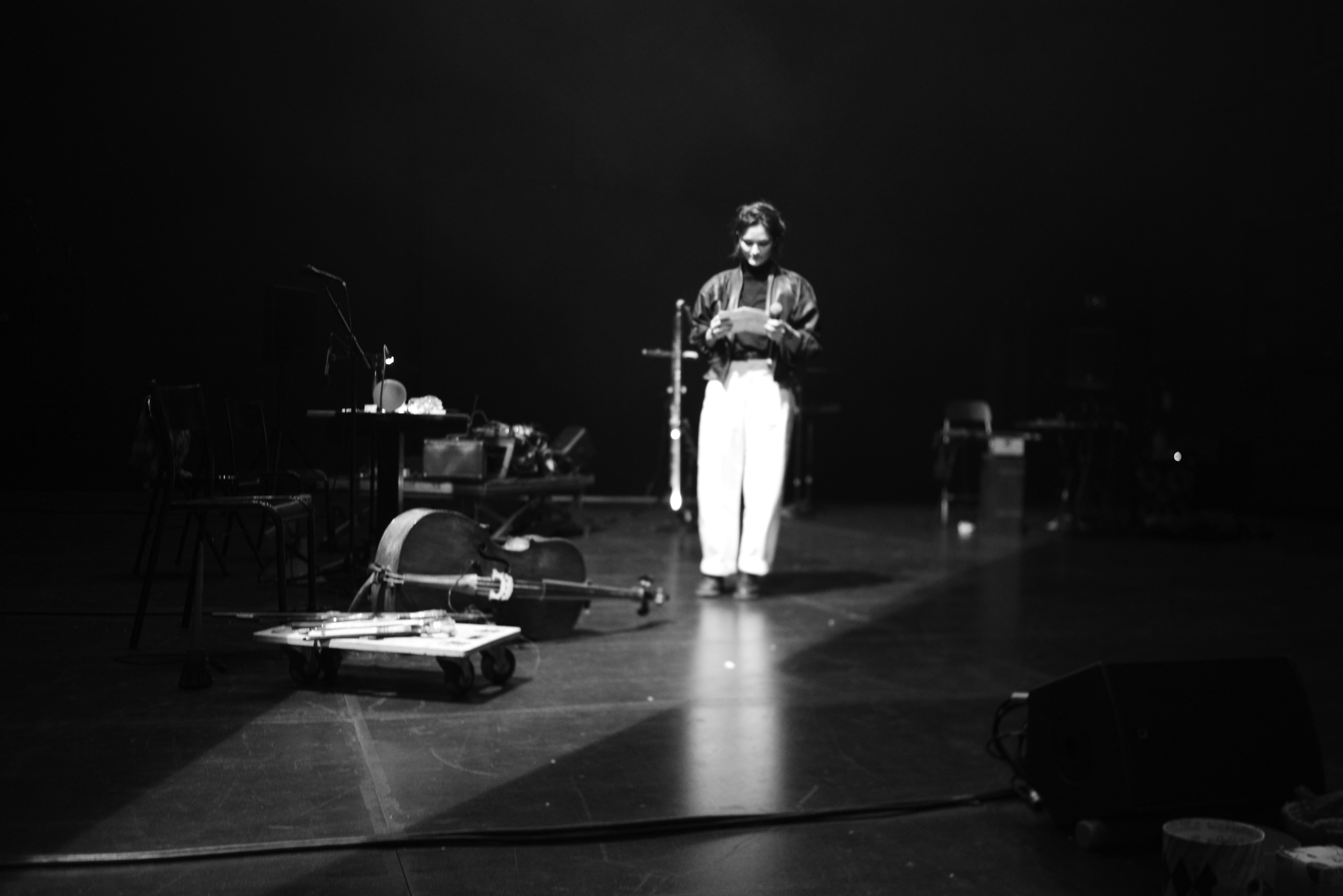 IMPRO MULTISETS avec Pom Bouvier‑b, lutherie sauvage et objets glanés – Patricia Dallio, set nomade – Laëtitia Pitz, texte – Ayako Okubo, flûte octobasse – Floy Krouchi, guitare basse – Lucie Prod’homme, voix – Soizic Lebrat, violoncelle – Celine Pierre, violoncelle arrangé.